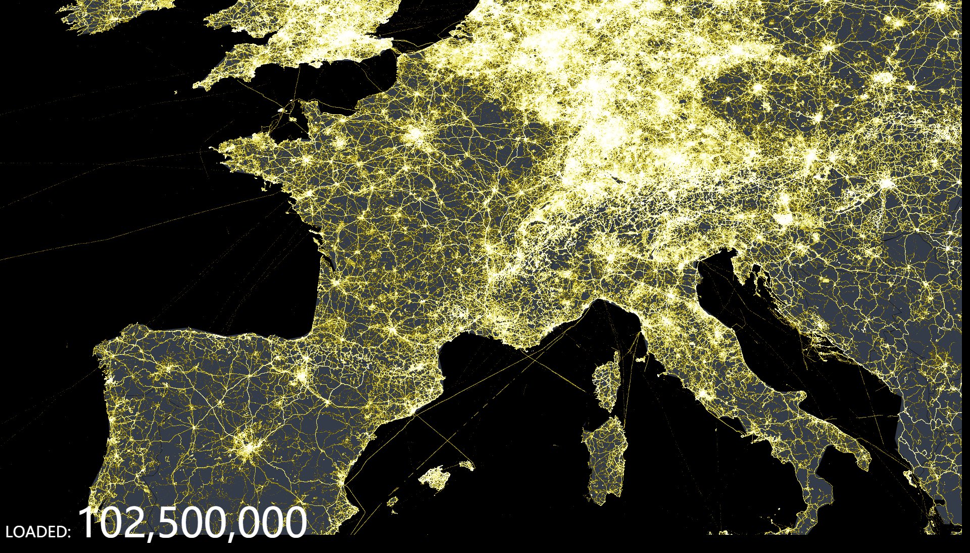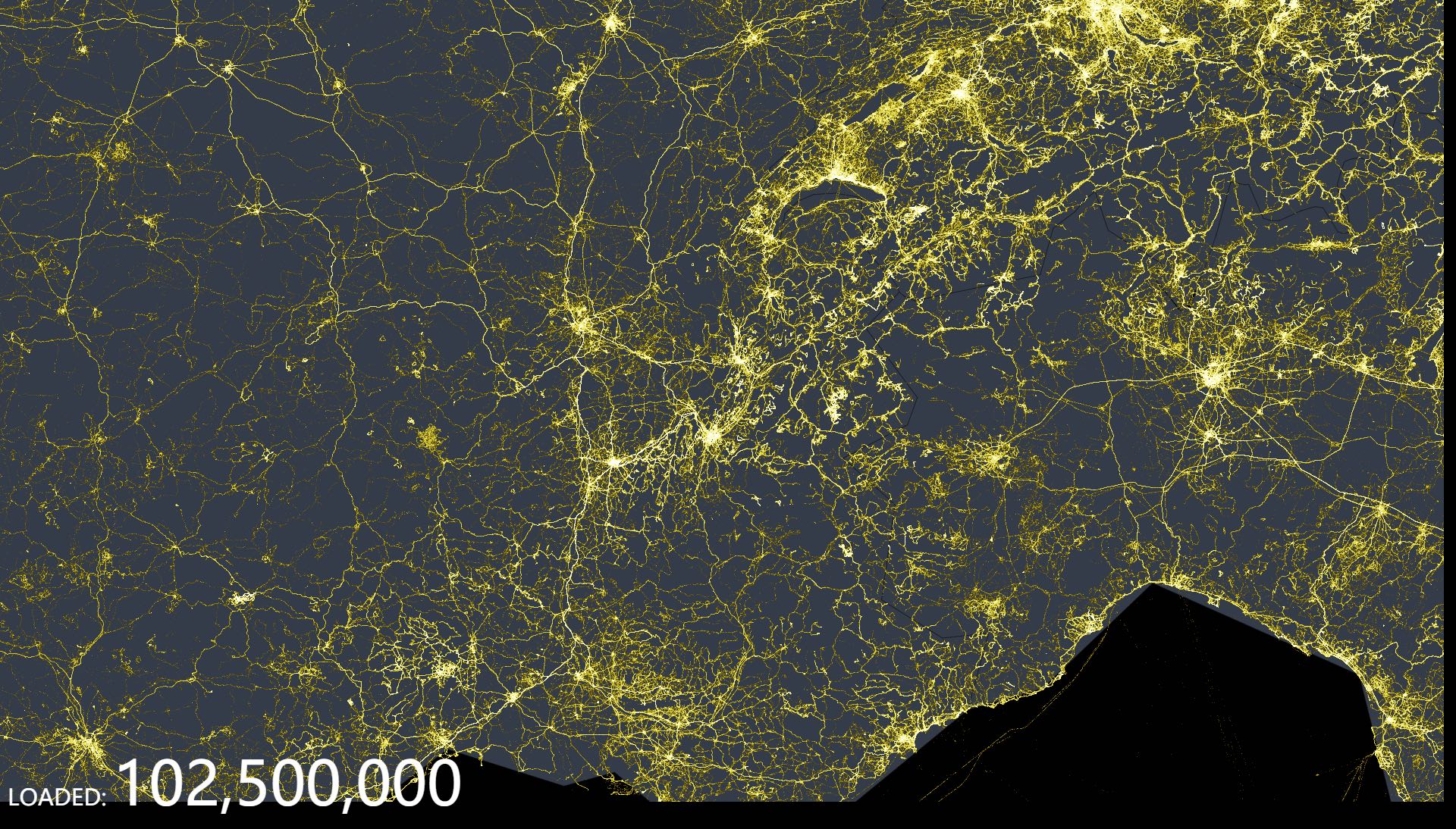 Using this many data points is usually very memory intensive. ECharts supports streaming data since v4.0, allowing you to render as much data as possible using WebSocket. Data can be rendered even when the complete dataset has not yet loaded.
