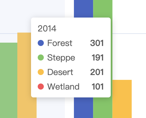 Tooltip is one of the most commonly used visualization components to help users interactively understand the details of data. In Apache ECharts 5, we have optimized the style of the tooltip, making the default display of the tooltip elegant and clear by adjusting the font style, color, arrow pointing to the graph, border color following the graph color, and other features. The rendering logic of rich text has been improved to ensure that the display is consistent with the HTML way, allowing users to choose different technical solutions to achieve the same effect in different scenarios.