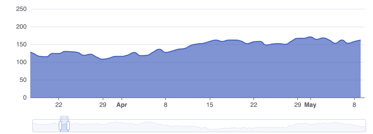 For the line chart, there is an intuitive style change that the axis line and axis tick of the y axis (value axis) are hidden by default. Look at the following image, the left one is the default style of the line chart in v4 and the right one is the new style in v5. In fact, we already can figure out the values just by the split lines, so we hope to hide unnecessary elements to deliver the chart message in a clearer way.